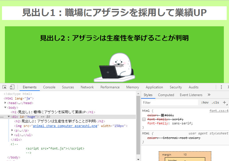 <h1>見出し1:職場にアザラシを採用して業績UP</h1>