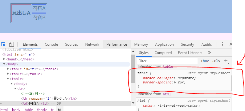 <th rowspan="2">見出しA</th>
