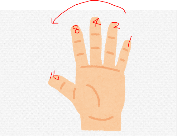 小指は2の0乗の位(1の位)