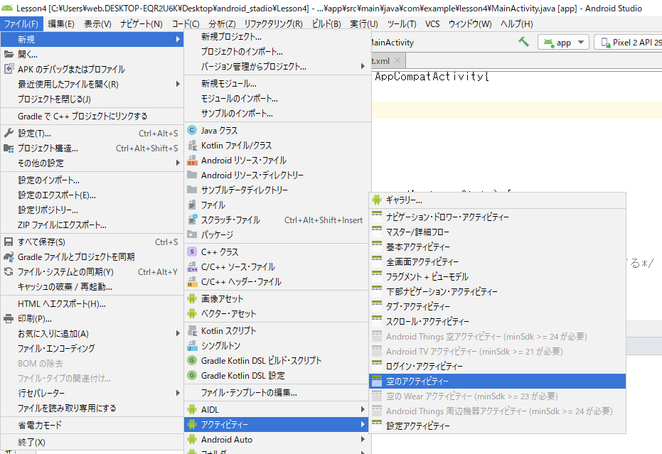 androidstadioは、いまxmlでかくのが主流。