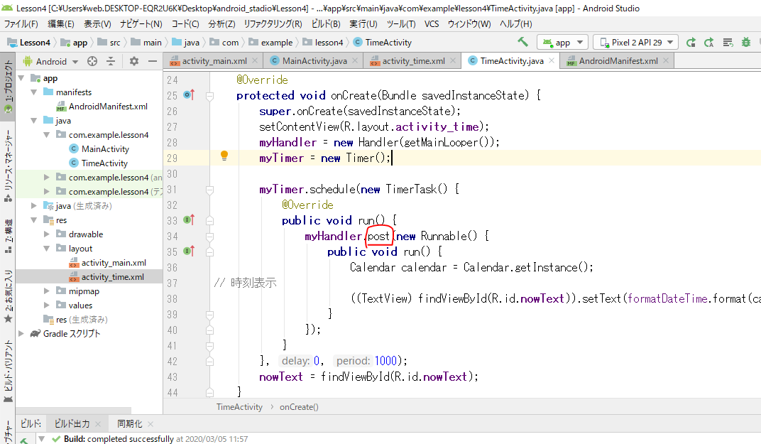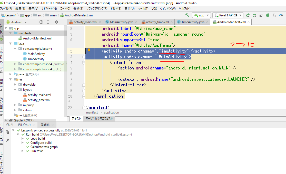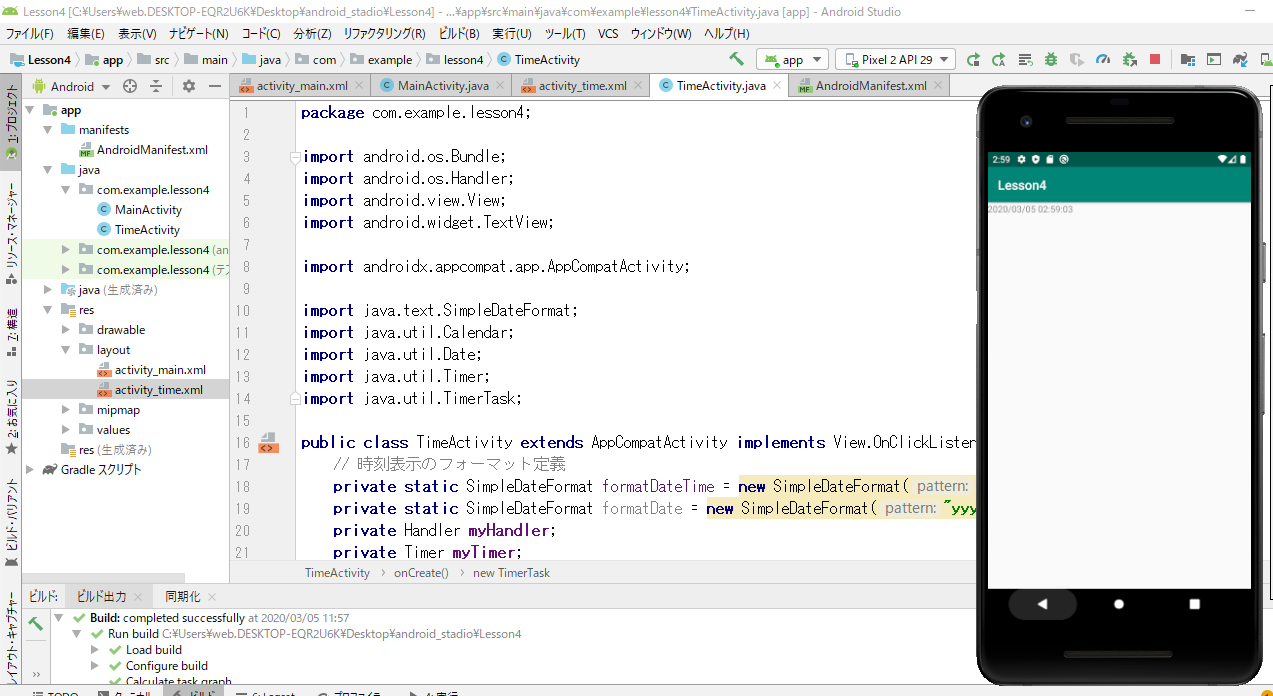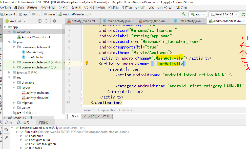 mainがあってtimeがあってまたmainにもどってすると、3画面開いているらしい