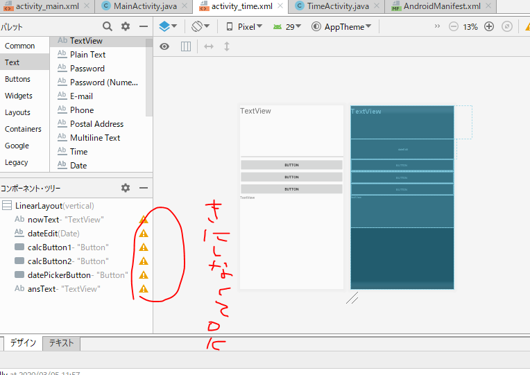 Constraint Layout コンストレイントレイアウト(こんすとらくと?レイアウト)レイアウトにボタンひとつでするにはこれ。