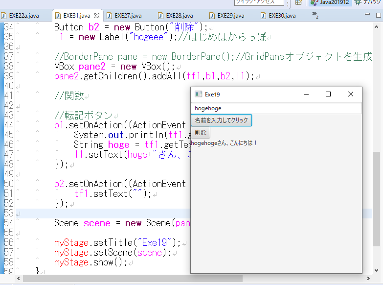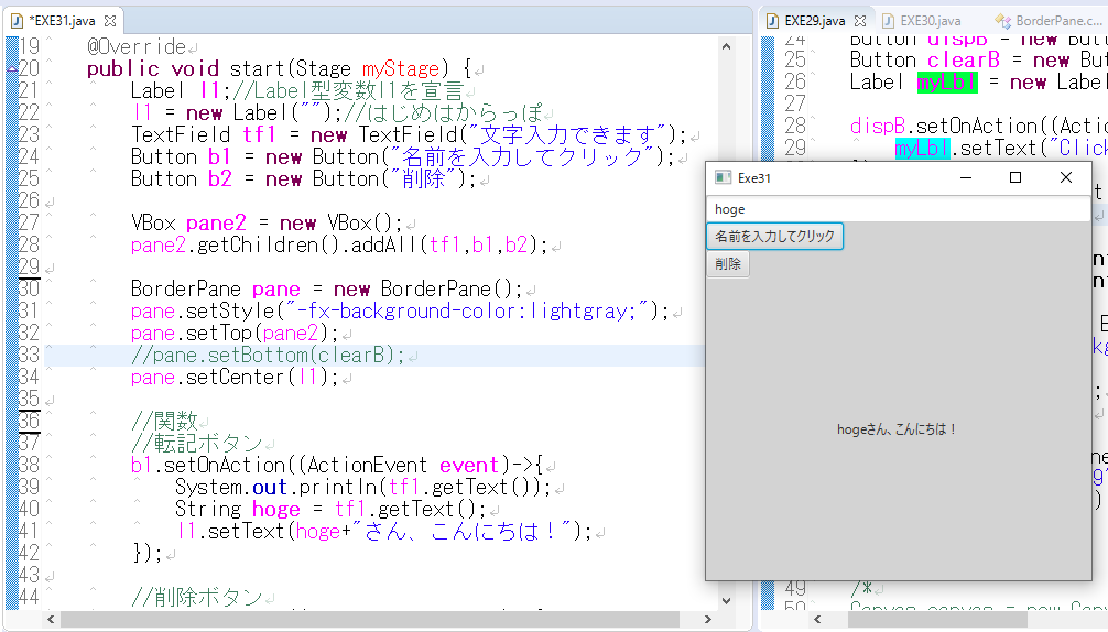 Button b1 = new Button("名前を入力してクリック");//Buttonオブジェクトを生成し変数に代入