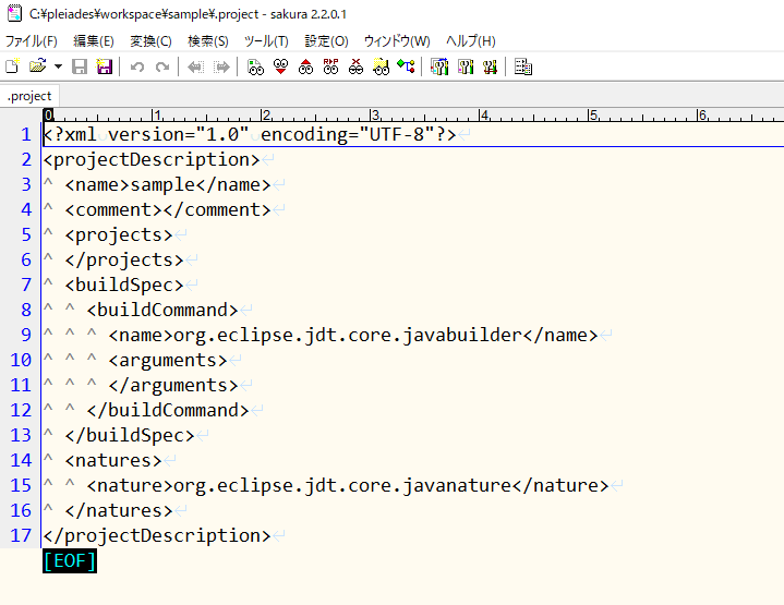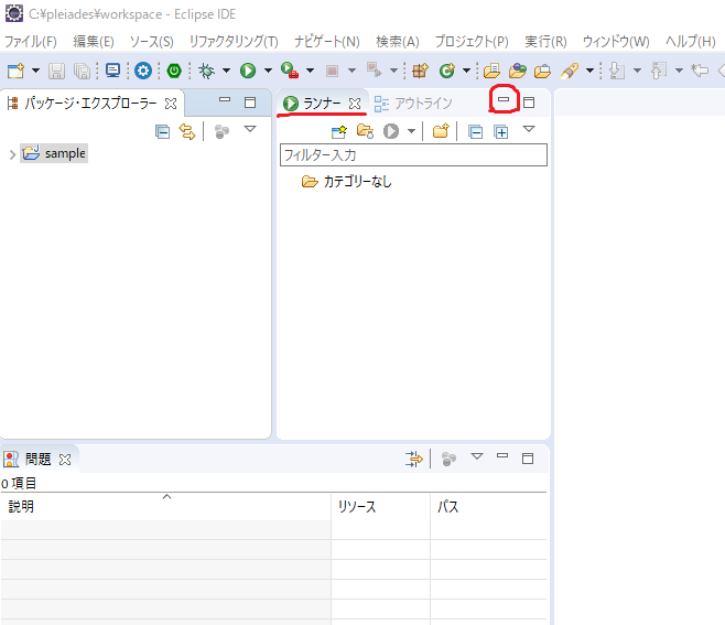 ファイル→新規→プロジェクト→名前はsample→完了→モジュールは「作成しない」