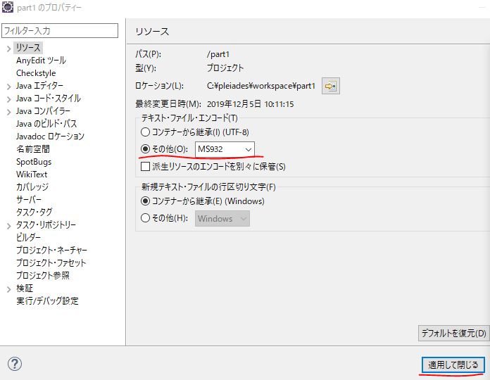 part1右クリック→一番下→プロパティ→ms932(s-jisのこと)