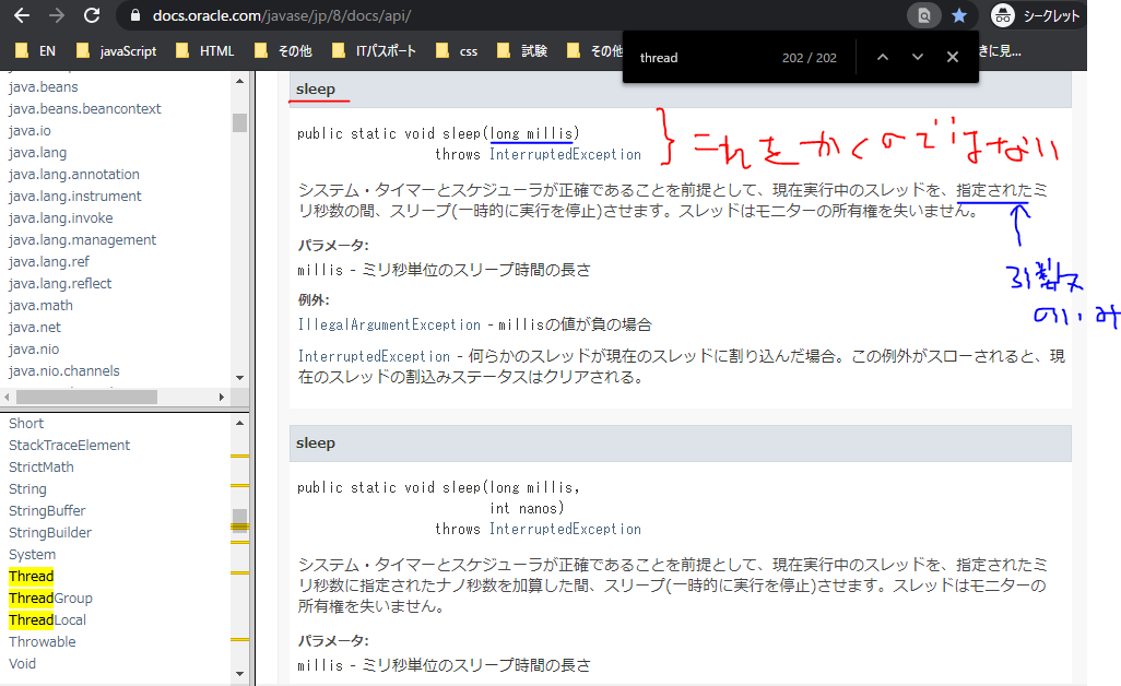 ④sleep(long millis)というメソッドがある。これで前半部分と後半部分が判明した