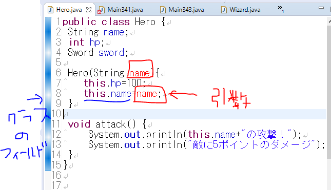 しかしいまHeroをnewするときに「必ず名前を引数で送れよ」という設定になってしまった