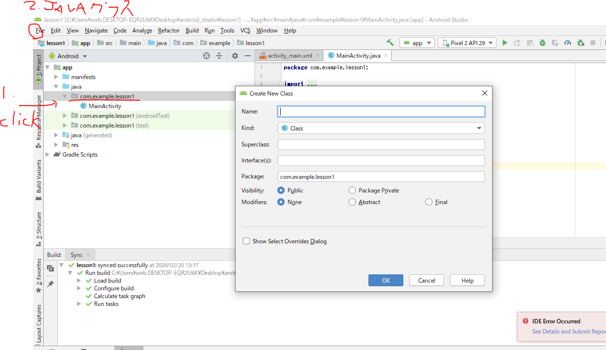 android stadio用のフォルダをデスクトップに作る。