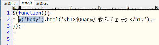 $('body').html('<p>jQuaryの動作チェック</p>');