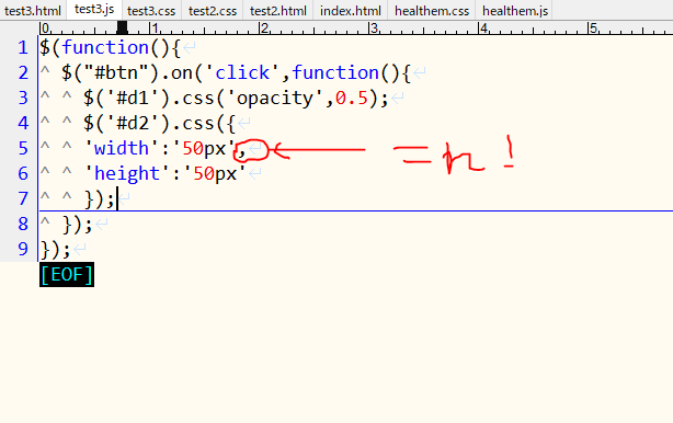 'width':'50px', //ここの末尾のカンマを忘れないように!!