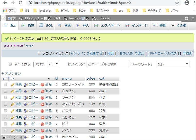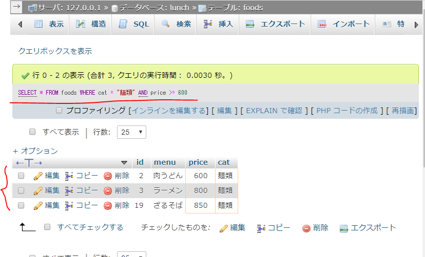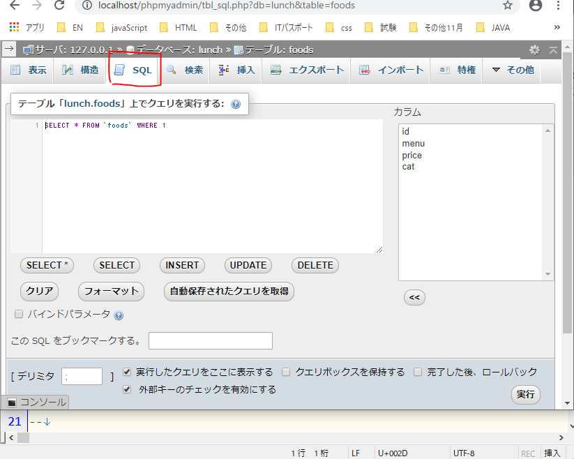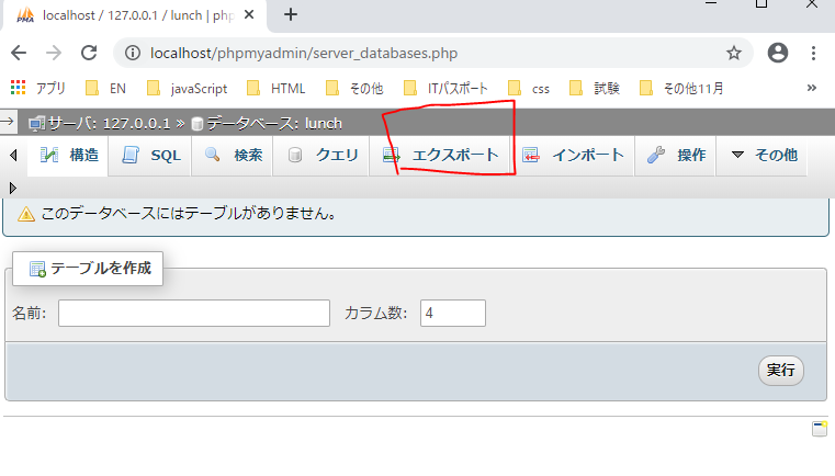 データベースlunchが選ばれた状態で(パンくずリストに書いてある状態ですよ)