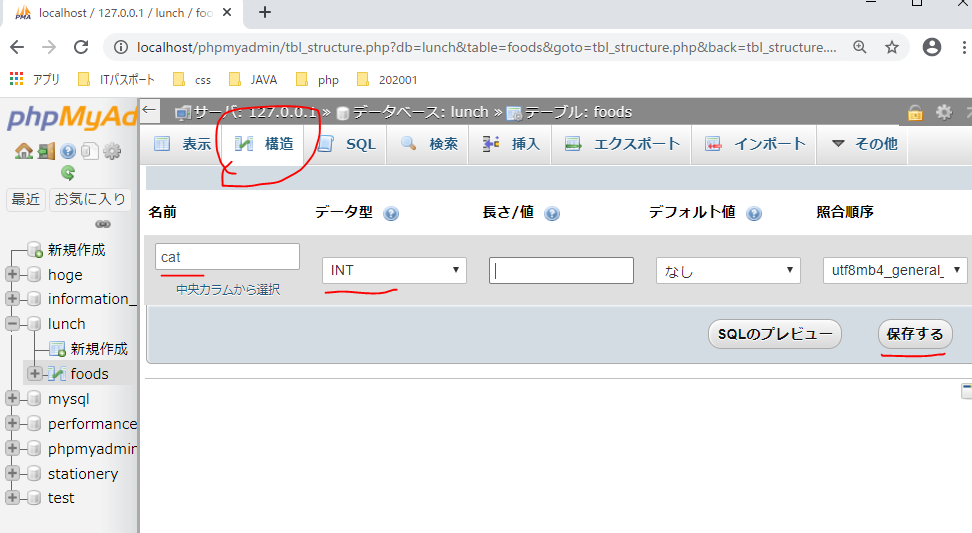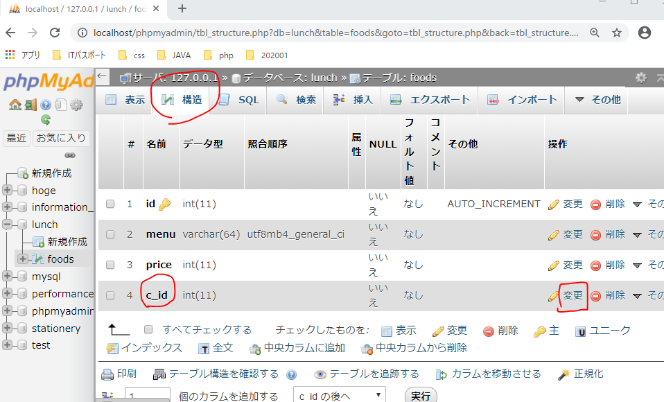 つまり別表のプライマリキーが1,2,3...としたいのだから、対応するfoodsの外部キー(今変更した部分)はデータ型を一致させましょうと