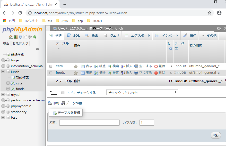 lunchのsqlを開く