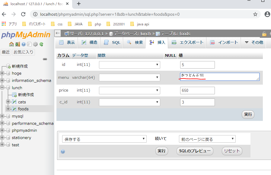 foodsテーブルのmenuに「インデックス」をつけておくと検索がはやくなるらしい