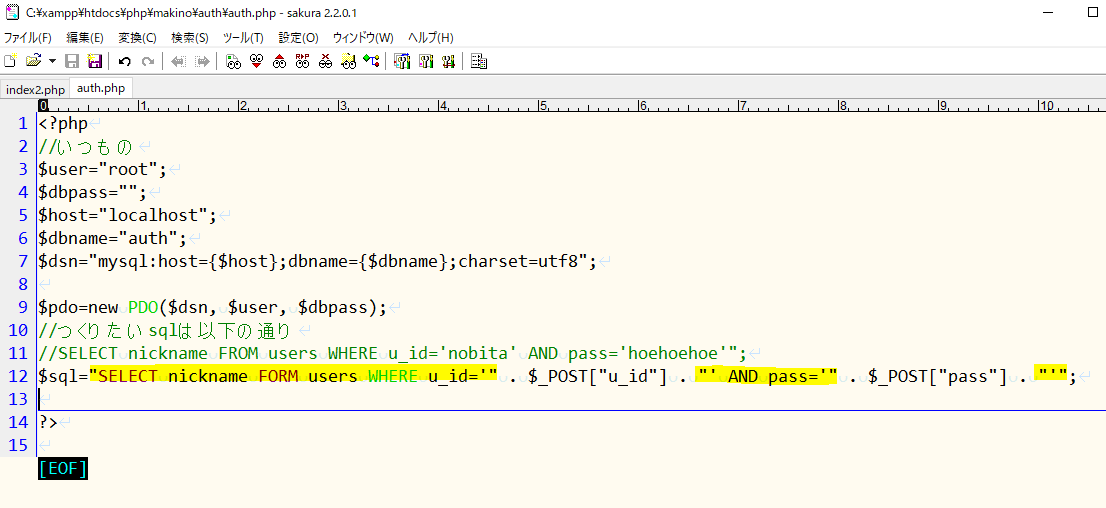 いまindex2.phpはパスワードハッシュしてるので、