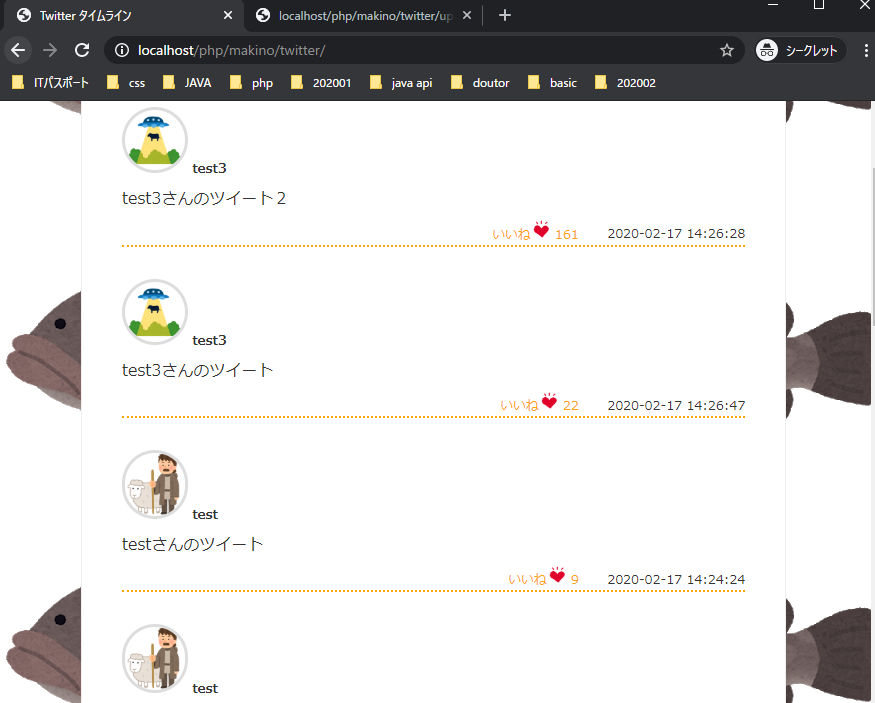<!--ツイートの数だけwhileで繰り返す-->