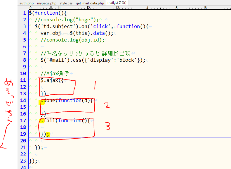 Ajax通信は3つのブロックに分けて記述する