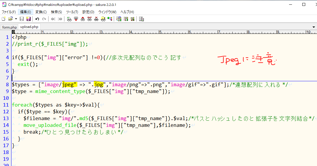 mimeではjpgファイルの拡張子は「jpeg」