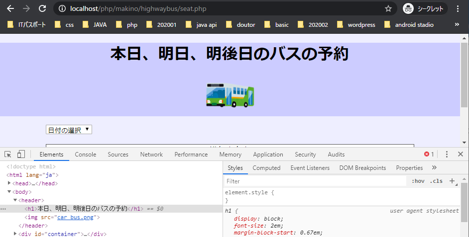 <h1>本日、明日、明後日のバスの予約</h1>