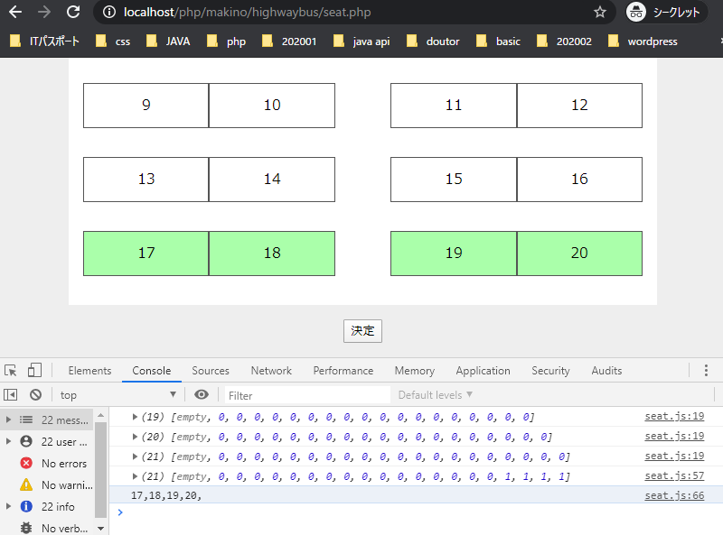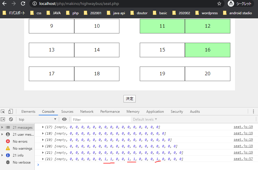 seats[d[i].seat_id] = 0;//予約まだしていません