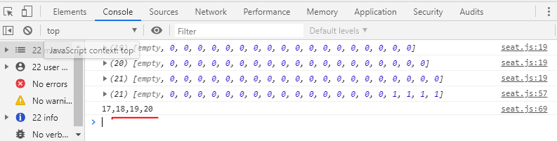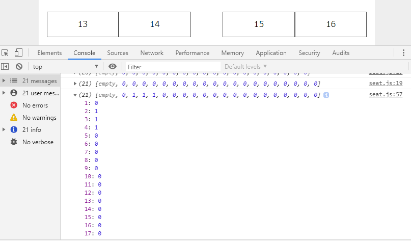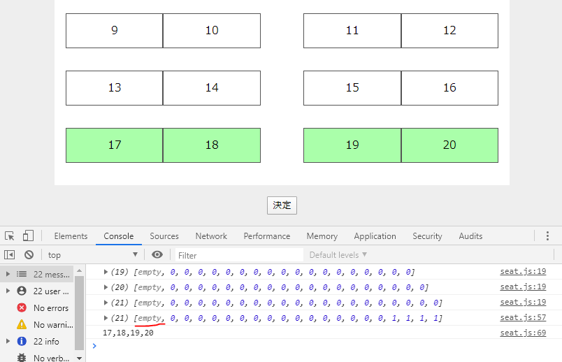 for(var i=1; i<seats.length ; i++){//座席番号は1から始まるが勝手に0番が付与されているので-1する