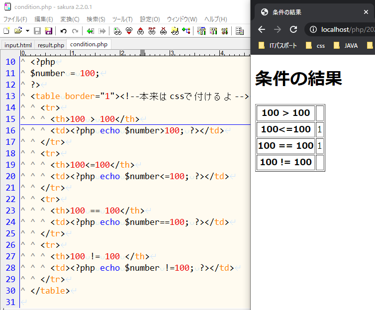 <h1>条件の結果</h1>