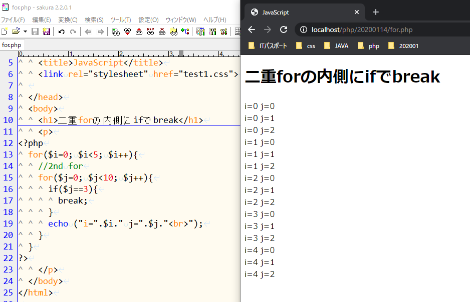 <h1>二重forの内側にifでbreak</h1>