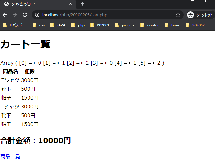 <p><a href="cart.php">カートの確認</a></p>