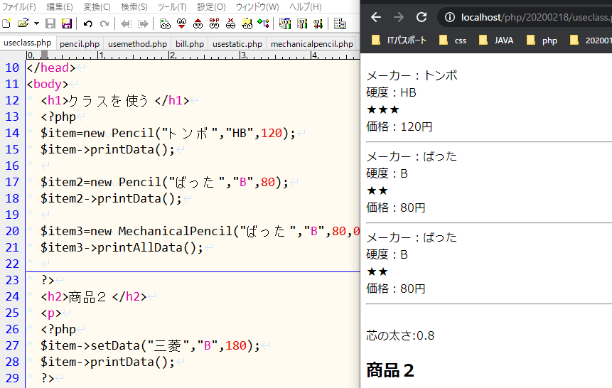 $item3=new MechanicalPencil("ばった","B",80,0.8);