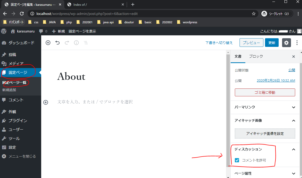 固定ページのコメントを許可するのはここ。